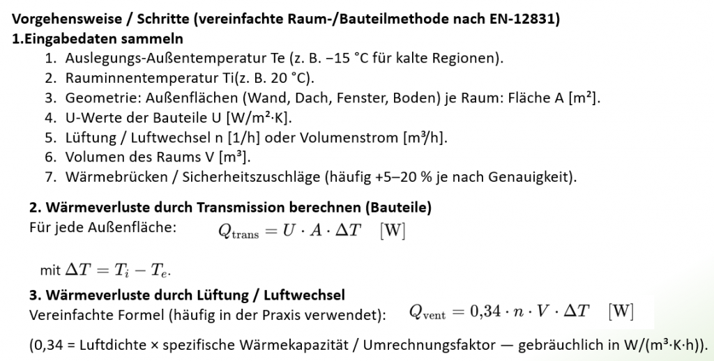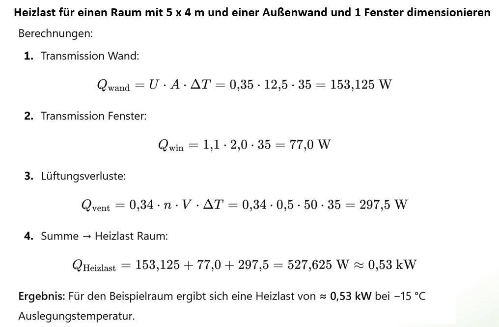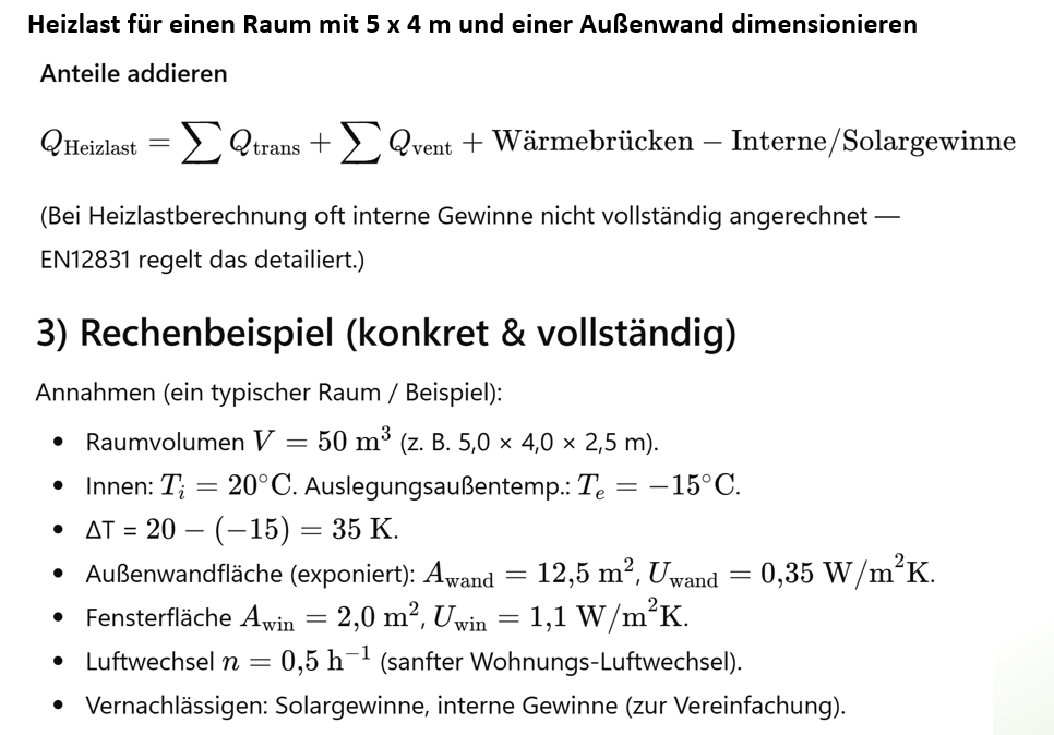 Nun wollen wir den maximalen Heizbedarf für einen Raum exemplarisch berechnen: