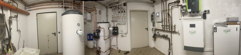 Die alte Anlage war ein Niedertemperatur Gaskessel von Viessmann mit 15 kW thermischer Leistung, Baujahr 1995. Mit dabei war ein Brauchwasserspeicher und ab 2010 eine thermische Solaranlage zur Warmwasserbereitung. Diese Anlage nutzen wir bei der Wärmepumpe weiter. Allerdings, aus jetziger Erfahrung, hat sich die thermische Solaranlage betriebswirtschaftlich nicht gelohnt. Sie führt aktuell zu einer (Strom oder Gas)-Ersparnis von 150€/Jahr, hat im Jahr 2010 6000€ gekostet, obwohl Pufferspeicher und die Rohre auf das Dach schon vorhanden waren.